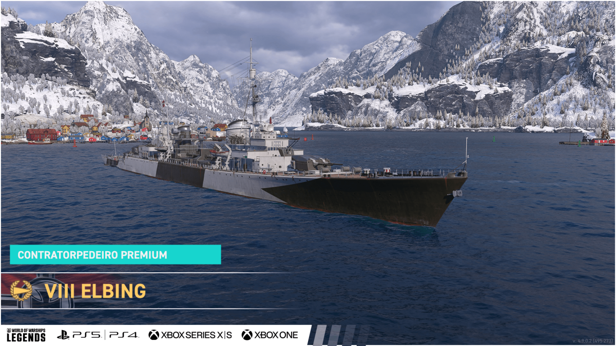O Elbing voltou! Este contratorpedeiro Premium alemão Nível VIII que já esteve em leilão agora está disponível na Loja por 1.400.000 XP Global.