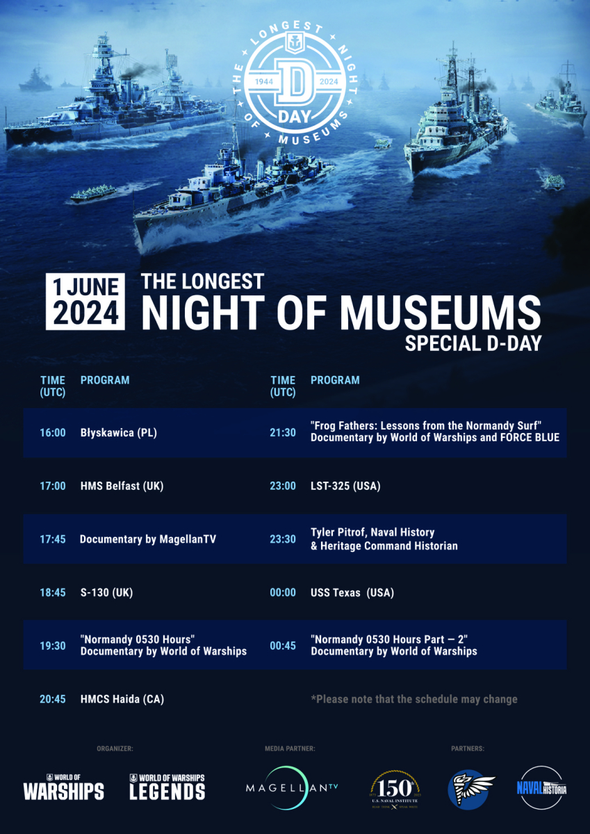 2024年是具有重要纪念意义的诺曼底登陆80周年,因此今年活动的全部焦点都在诺曼底海滩。在大约10小时的直播期间,您将被传送到一些参与过诺曼底登陆的战舰上,在其馆长的带领下开始特殊之旅。您还将见证专门为“最长的博物馆之夜”制作的两部全新纪录片的首映。