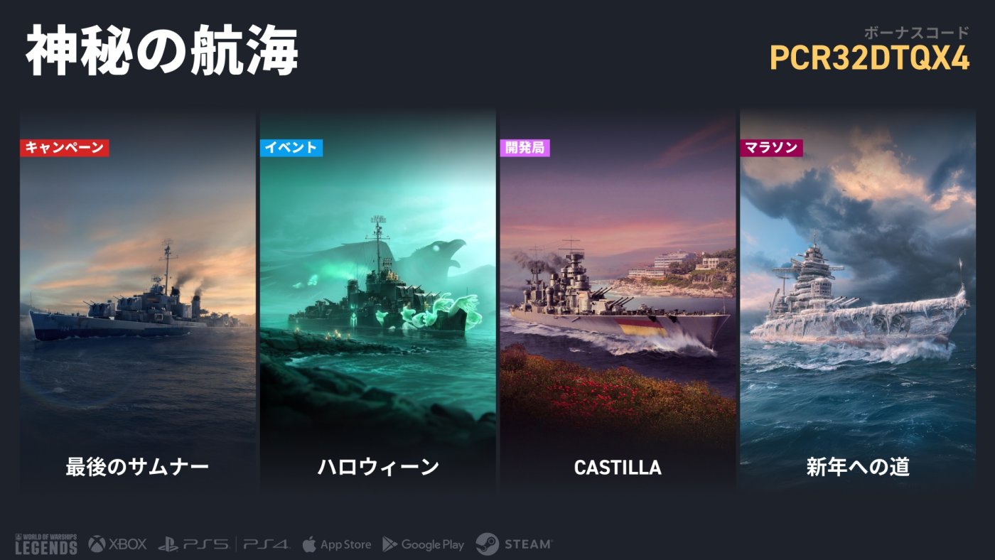 艦長の皆さん!不気味な季節の訪れとともに、ハロウィーン・アップデートが実装されます!背筋の凍るような戦闘と一風変わった褒賞に備えましょう。他にも通常のキャンペーンや開発局など、楽しいコンテンツでいっぱいです。