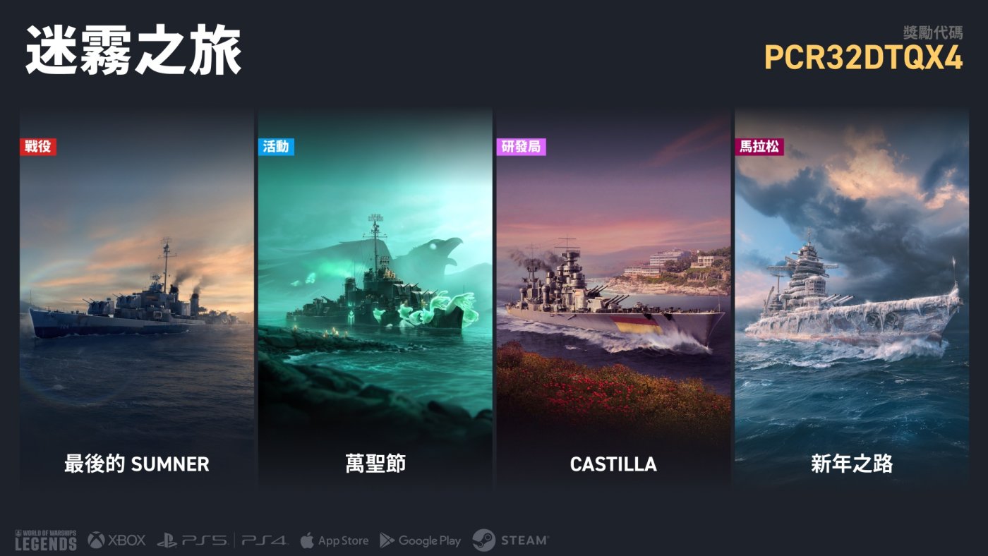 噓… 我們有個小禮物要送給您!只需兌換代碼「PCR32DTQX4」即可領取:1x 秋季大箱子、5x「類型 3 — 萬聖節」迷彩、5x「2024 年萬聖節」迷彩、10x 一般的戰鬥加成器、「愛好閱讀的艦長」旗幟。
