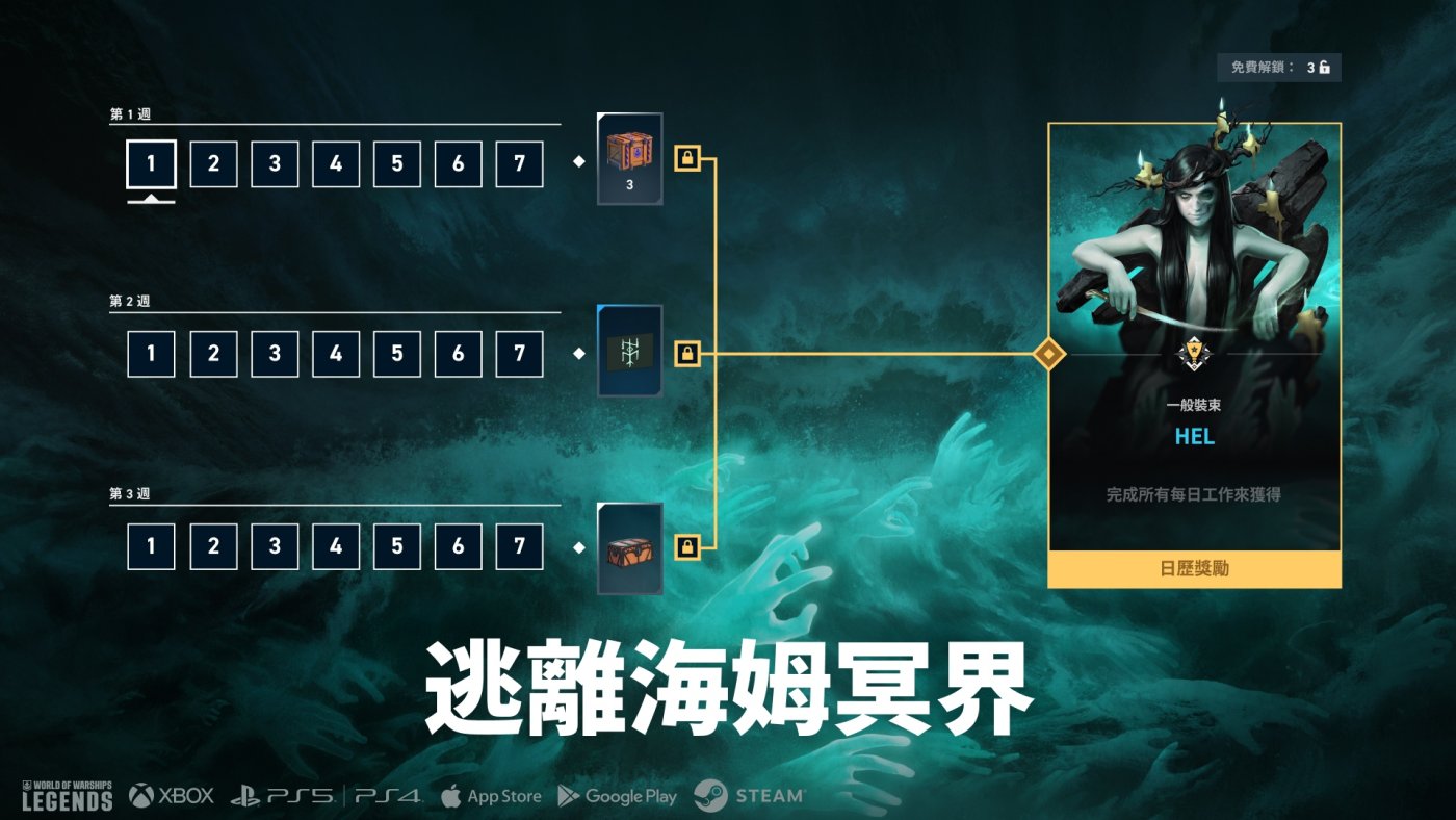 10 月 6 日起,在為期 3 週的全新日曆中完成所有每日工作,即可解鎖冥界女神 Hel 的指揮官裝束。其他獎勵包括 2025 年萬聖節箱子、赫爾印記旗幟、秋季大箱子,以及更多獎勵。您最多可以免費補上錯過的 3 天,但請注意,在頭三週過後就只剩一週的時間可以完成日曆。
