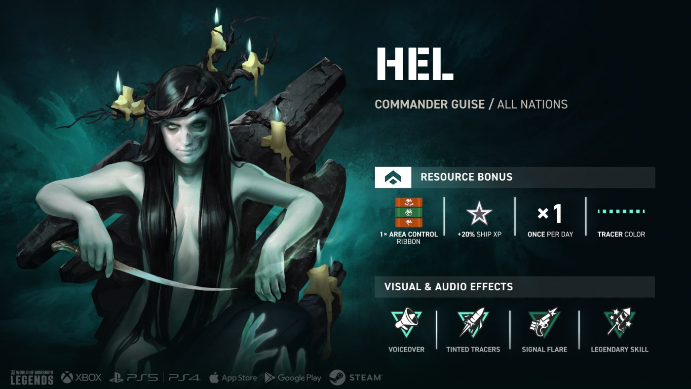 Hel, the goddess of the underworld, has arrived in Legends! You had better get her on your side—and you can do so through the new Calendar. Start it on October 6 and complete all daily tasks within 3 weeks to unlock the Commander guise of Hel and many other rewards, including a Halloween '25 crate, the Hel's Mark flag, Fall Big Crates, and more.