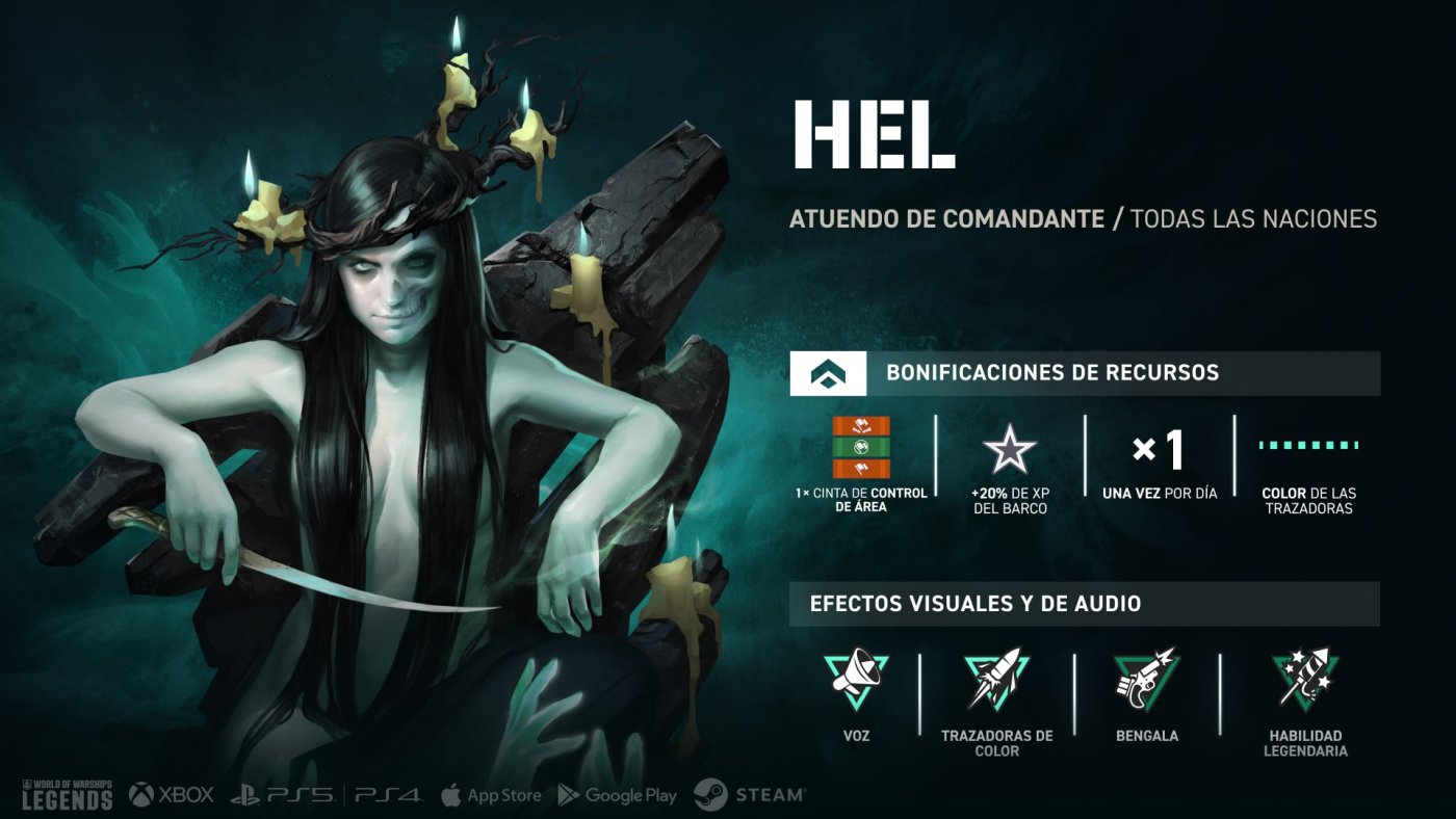 ¡Hel, la diosa del inframundo, ha llegado a Legends! Será mejor que la tengas de tu lado, y puedes lograrlo a través del nuevo Calendario. Comiénzalo el 6 de octubre y completa todas las tareas diarias durante 3 semanas para desbloquear el atuendo de Comandante de Hel y muchas otras recompensas, incluyendo una caja “Halloween '25”, la bandera “La marca de Hel”, cajas grandes “Otoño” y más.