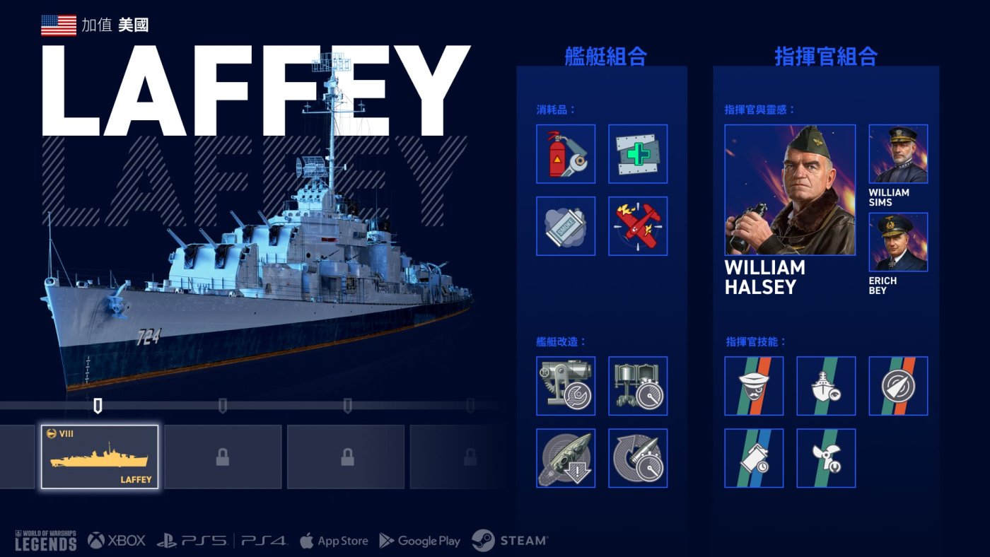 指揮官 William Halsey 是 Laffey 的絕佳選擇。他的「我是說傷害」基本技能能提高驅逐艦的 AP 彈傷害最多 5%。
