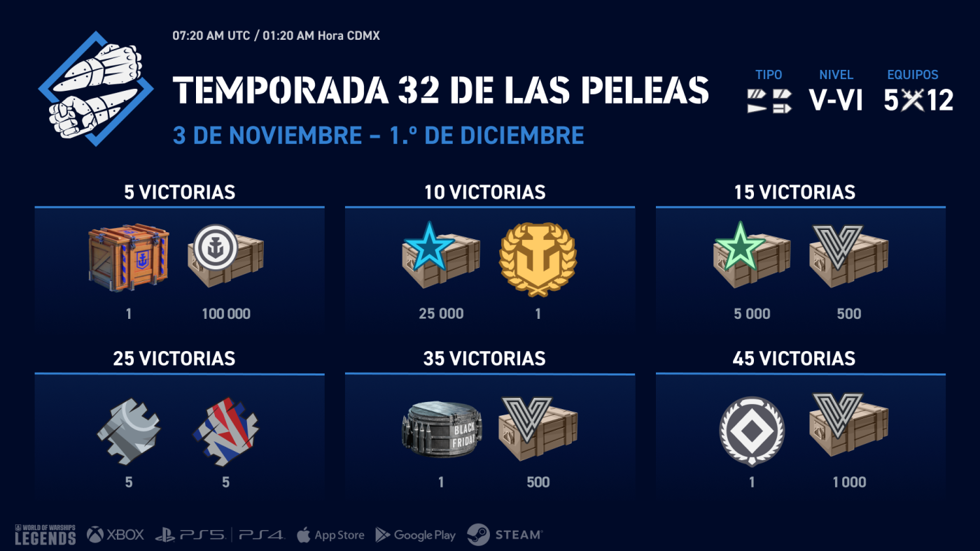 Tengan en cuenta que las recompensas de esta temporada también incluyen Acero, lo que les da la oportunidad de prepararse para el lanzamiento del nuevo destructor francés Marceau, el cual estará disponible a cambio de Acero a partir del 1.º de diciembre.