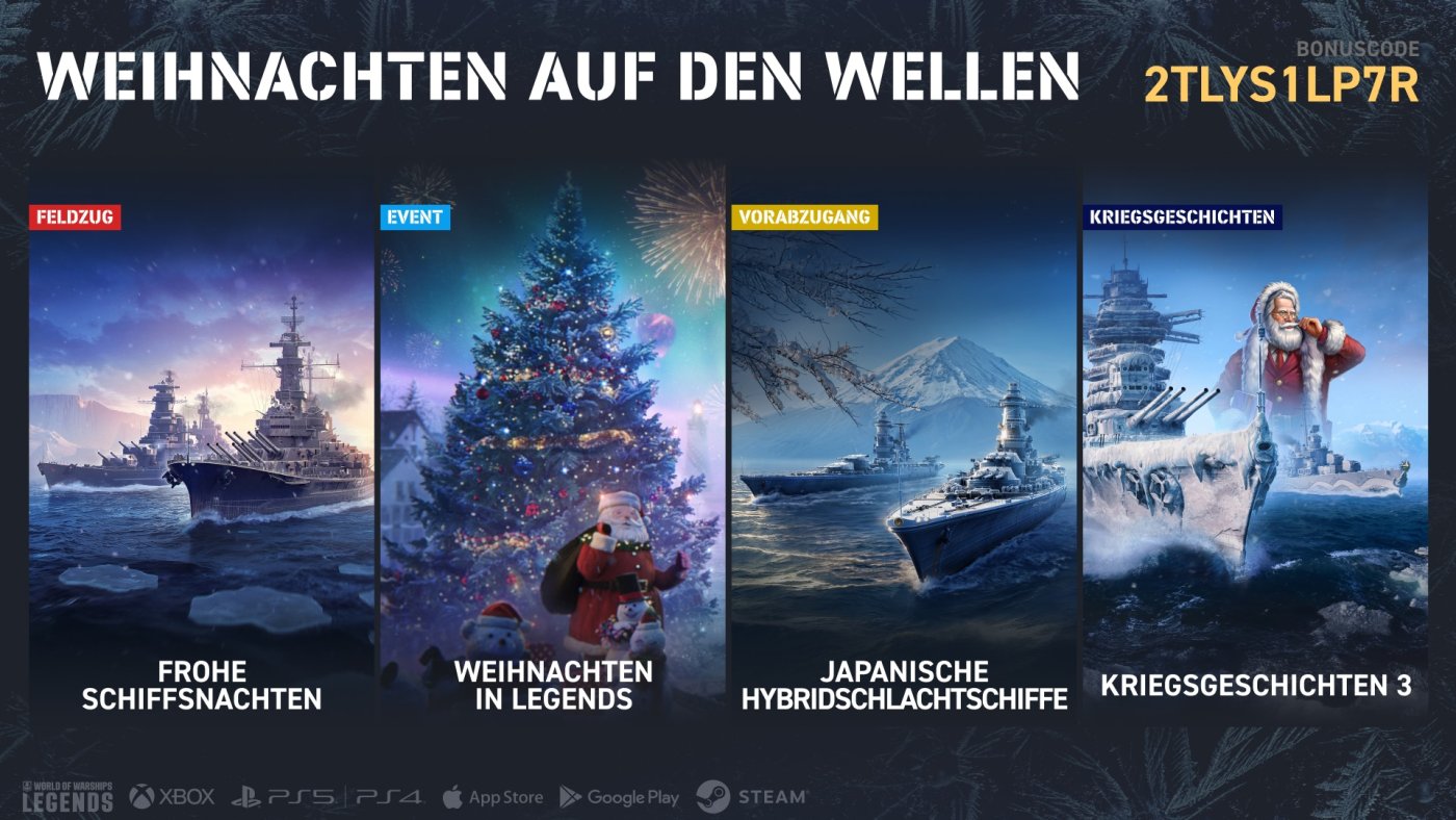 Die festliche Jahreszeit ist voller Spaß und Geschenke! Spielt vom 1. Dezember bis zum 19. Januar Legends, um die festliche Zeit zu genießen und jede Menge Belohnungen zu verdienen, wie die neuen mystischen Container. Außerdem könnt ihr euch auf den Hafen „Weihnachtsstadt“ freuen und unseren traditionellen Adventskalender entdecken. Alle Details erfahrt ihr morgen in unserem Artikel und Video!