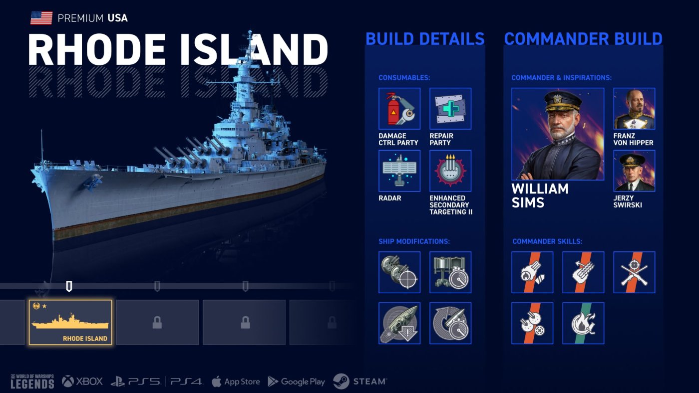 在《战舰世界:传奇》中,罗德岛号是一艘美国传奇级战列舰。其优势在于高效的副炮,可搭配增强型副炮瞄准 II消耗品使用,同时还能在引擎增压与雷达两种消耗品之间自由选择。它的主炮口径相对较小,但装填迅速,且穿甲弹具备改进的跳弹角度。