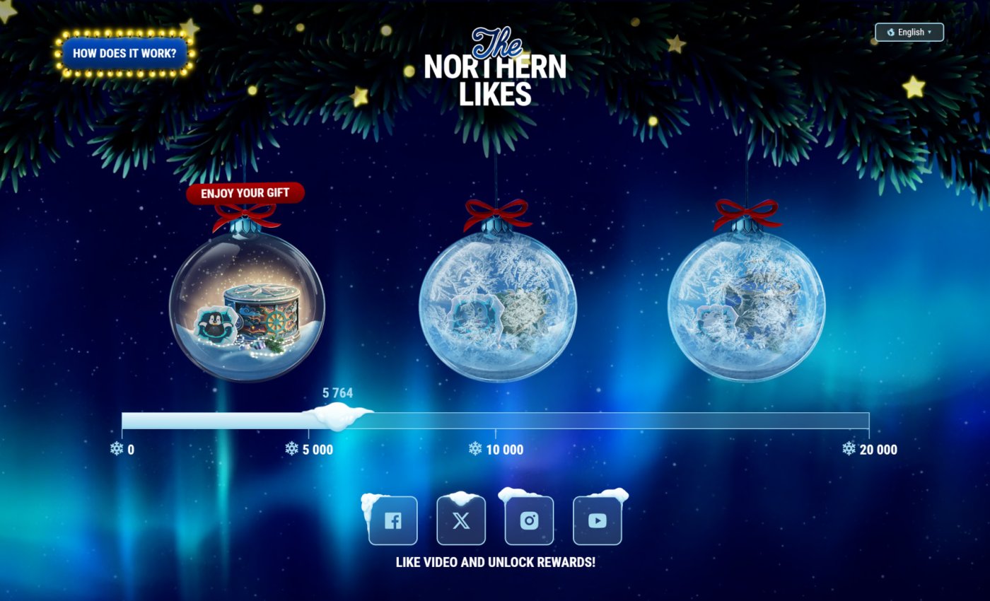 Our special Christmas event—Northern Likes—is launching as we speak! Support the new video with your likes across all four social media platforms—Facebook, X, Instagram, and YouTube—to unlock three tiers of rewards: 1x Mystic Box; 2,000 Merry Tokens; and 1x Mystic Lantern. Each reward also comes with a unique patch symbol.