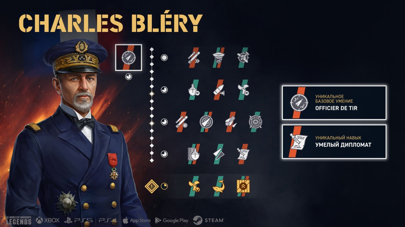 И не пропустите ещё одну активность — миссию «Море отваги». В награду за её выполнение вы получите нового французского командира Charles Bléry. Его навыки придутся как нельзя кстати за штурвалом традиционных французских эсминцев, в том числе нового Marceau. Расскажем же, чем именно он отличается от остальных командиров.