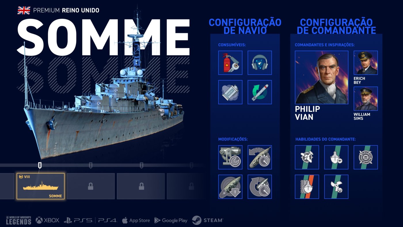 Além disso, Somme mantém os bons canhões típicos dos contratorpedeiros britânicos, possibilitando um estilo de jogo versátil. A útil combinação de Sonar e um Gerador de Fumaça de recarga rápida e curta duração também é típica dos contratorpedeiros britânicos.