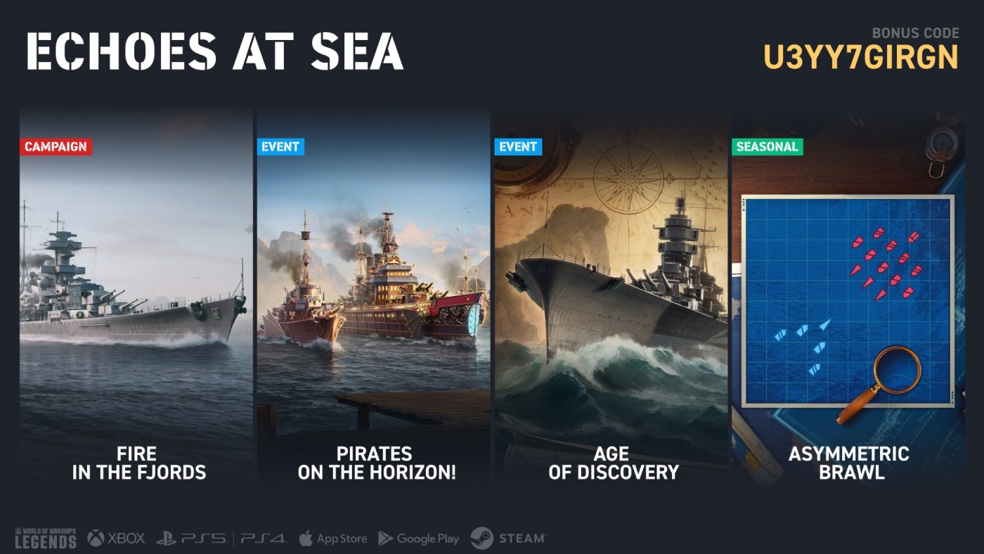 Psst… we have a little gift for you! Simply redeem the code U3YY7GIRGN to claim 1x Spring Big Crate, 10x Pirate camouflages, 10x Common Battle Boosters, and the Captain Reader flag.