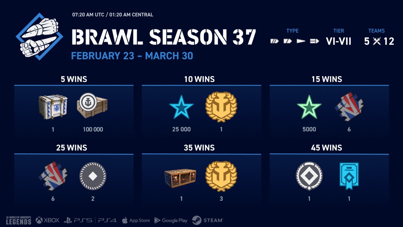 Captains, it's time for another asymmetric Brawl on February 23! You'll battle in teams of five players against 12 bots, sailing Tier VI–VII ships of any type. The bots are smart, so they'll deal slightly less damage to keep the odds fair. The bot battleships and cruisers also won't be able to use torpedoes.