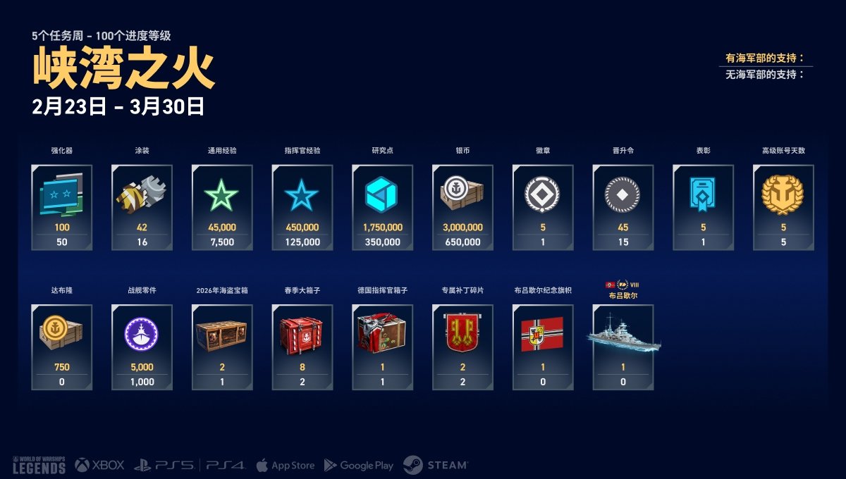 - “海军部的支持”特殊每周任务,奖励声望点数