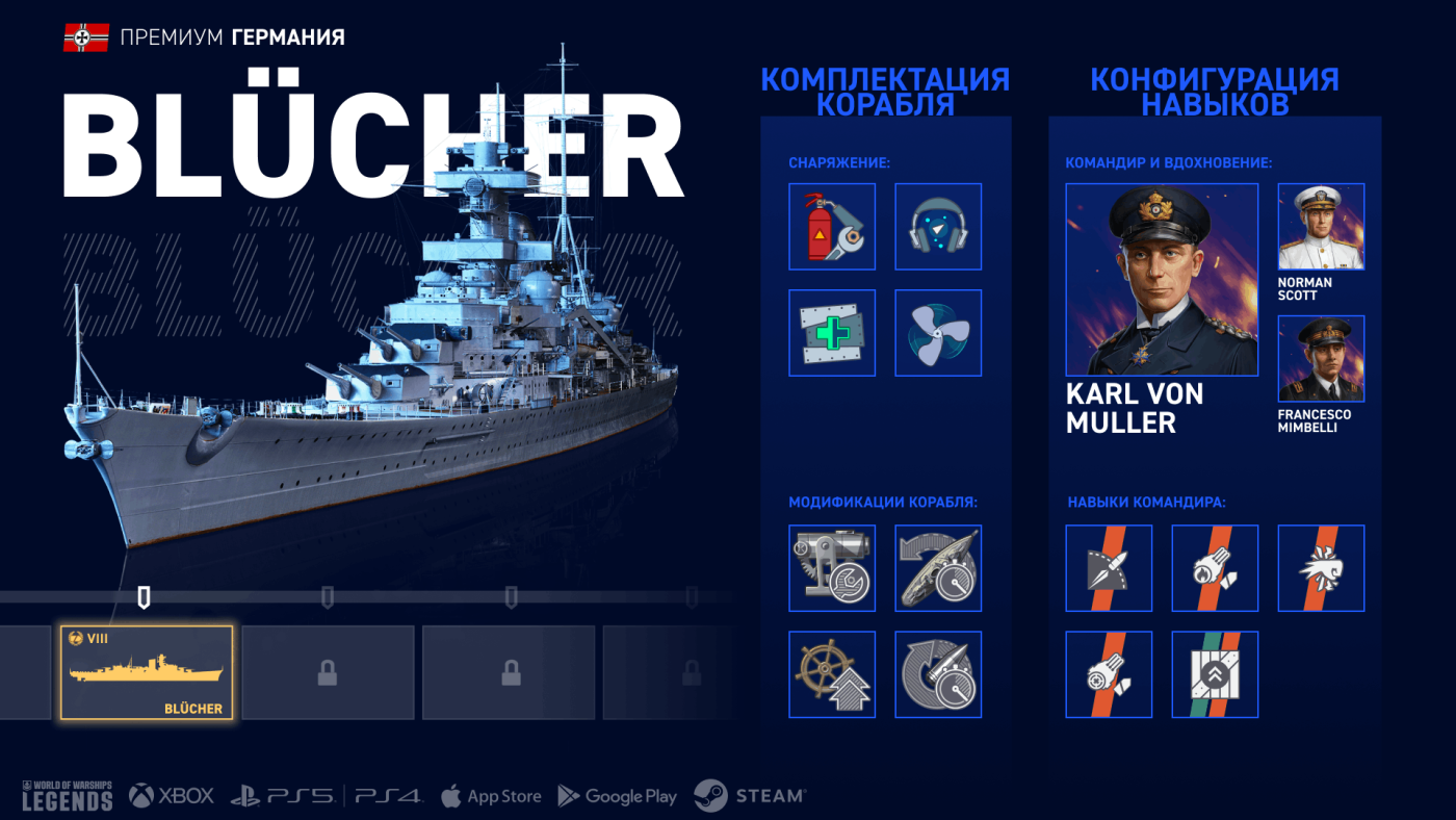 Легенды ждут вас за штурвалом крейсера Blücher!